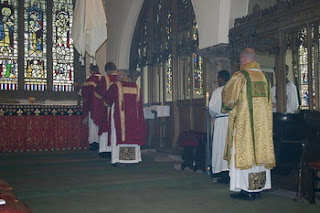 As many of you are aware, the Pope released a document recently, called a Motu Proprio, generally meaning 'off his own back', which addressed the subject of the Tridentine, or Old Rite Mass. Generally thought to have been abolished after the Second Vatican Council, the Old Rite used language and ceremony which had been modified and embellished over the years to something akin to the top photograph. The problem was that falling numbers and the social revolution of the 1960's made the Vatican think that it must change with the times, and present itself as integral to life, rather than separated from reality. (I have always argued that we need to continually make the message of salvation relevant, but we also need to keep the sacred Mass sacred and full of grace and truth). The Novus Ordo was introduced, the Mass changed, churches were re-ordered and, well, you know the rest, some awful things were done and some awe-full things were done. Mgr LeFebvre was excommunicated for consecrating 4 Bishops for his schismatic Society of St Pius X (one of whom, the charming Mgr Bernard Fellay, I have had the great pleasure of meeting) and everyone said that no good would come of it. We Anglicans, under the guidance of Dom Gregory Dix OSB, had already done some minor reordering in the 50's and that coupled with a shortage of funds, meant that we escaped much of the destruction of sanctuaries that affected the Roman Church.